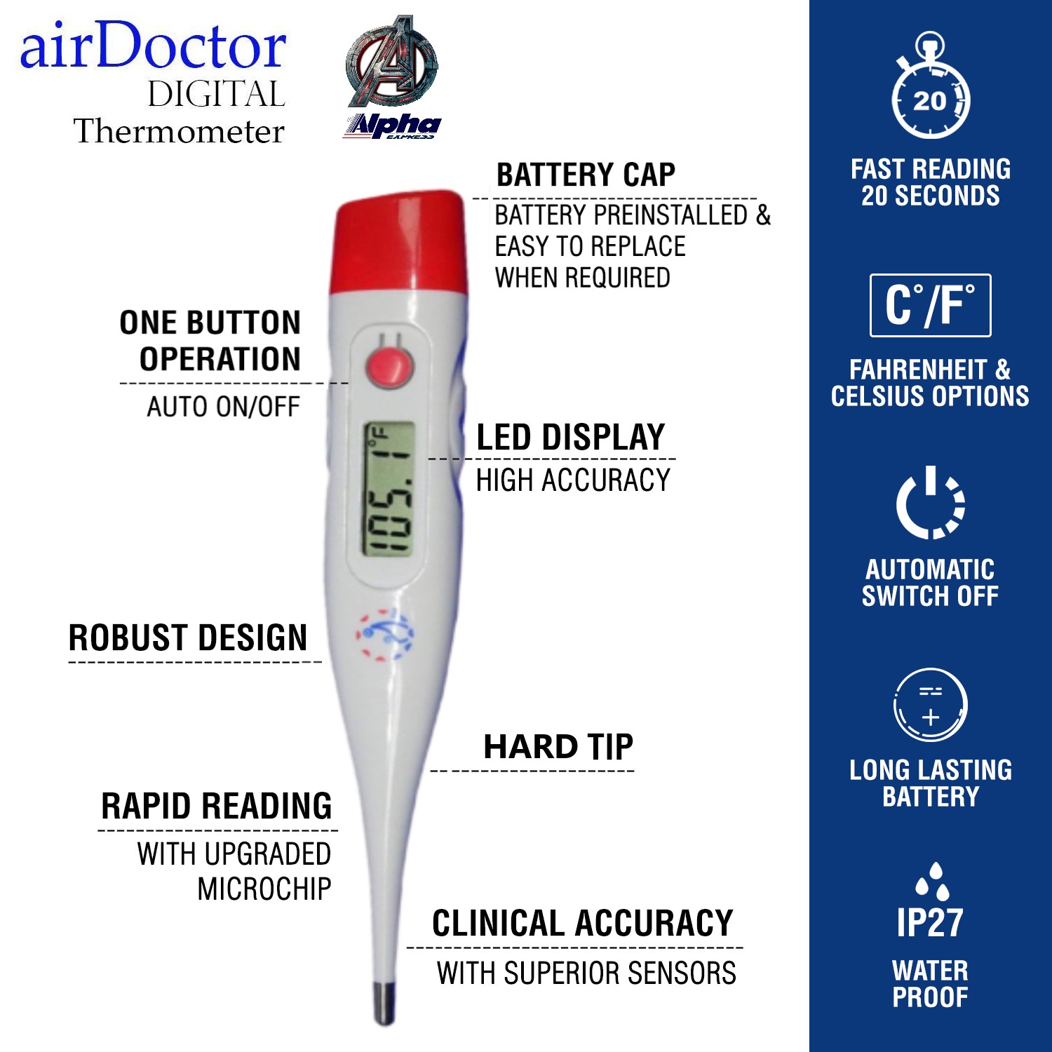 - Applicable body position – digital thermometer can be used orally, rectally, and under the armpit.