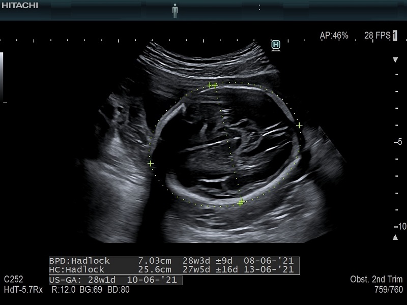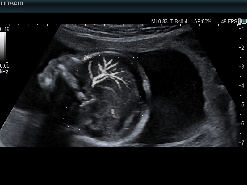 Dormed Hellas AR750 – Fetal brain color mode (DFI) Dormed Hellas AR750 – Fetal corpus callosum in the central