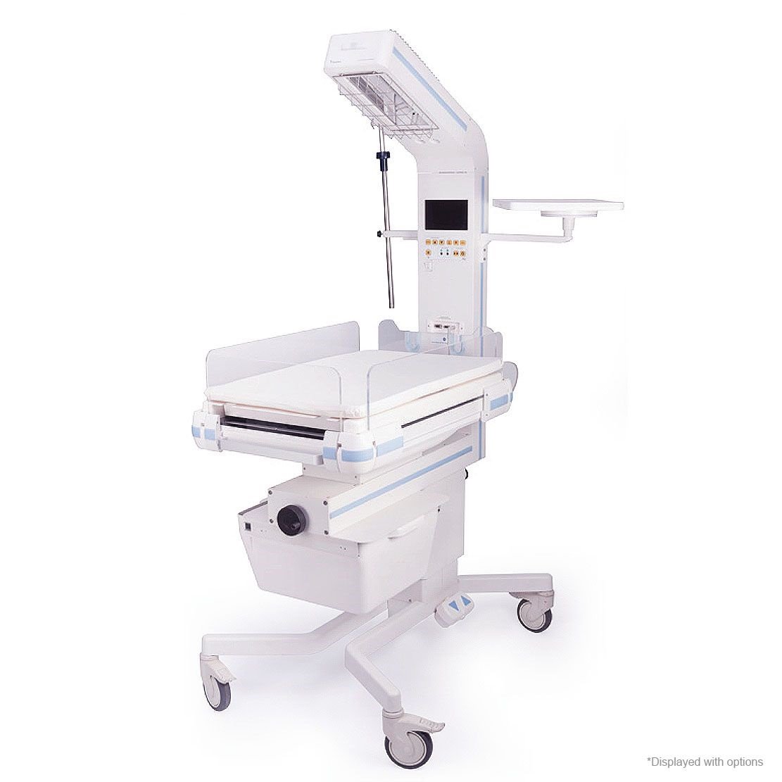 • As a newborn warming unit, it offers radiant warmth from above and has a newborn mattress.