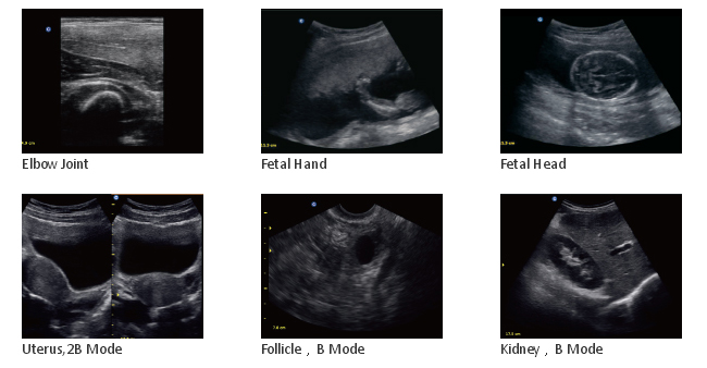 - Software packages, General measurement, OB, Obstetrics, GYN, Urology, Abdomen, Cardiac B/M mode, Vascular, Small parts, Orthopedic, Pediatrics.