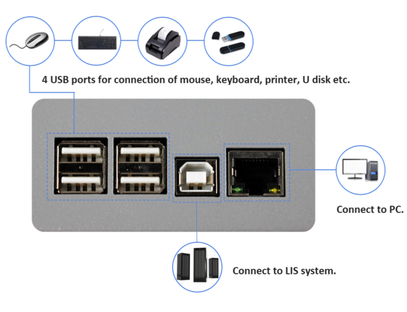 • Normal interface with RS232, 4 USB interfaces, Ethernet interface,