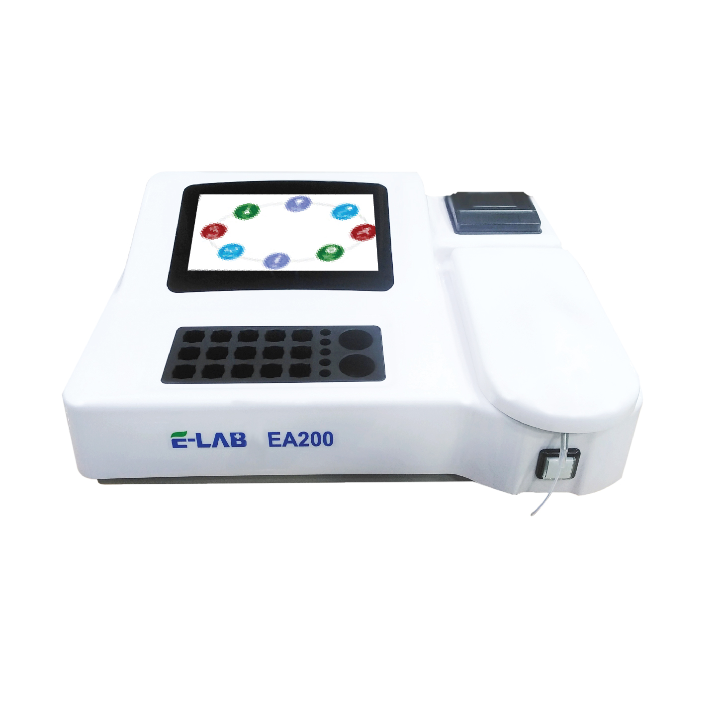 The ELAB EA-200 is a semi-automatic biochemistry coagulation analyzer with multi-functional testing capability – coagulation and biochemistry – that offers real-time heating temperature display of the incubation pool and flow pool. It offers both single-wavelength and dual-wavelength detection modes and tests for coagulation parameters such as PT, APTT, TT, FIB, and D-Dimer.