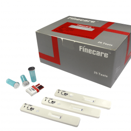 Fine Care system is based on Fluorescence Immuno Assay . Real POCT system for rapid quantitative analysis . All the parameters can perform with Whole Blood and few parameters can perform on serum / plasma and urine also. Fine Care has wide menu for Critical care , Cardiac , Diabetes , Renal injury , Fertility , Infection , Coagulation,Hormones , Tumor Markers etc. It is easy to perform test on Fine Care . Mono Test Reagents contains one Cartridge and one buffer . Each kit contains 25 Tests with a unique ID chip meant for assay and calibration data. Master curve concept for Calibration . No need of extra calibration . Simple procedure for all the parameters . Normal standard test and Quick test facility available for all parameters to save assay time . LCD touch screen , inbuilt printer and LIS connectivity available. Calibration and Test result memory for better management . Main parameters are HbA1c , PCT, TropI,D-Dimer,CRP+ hsCRP, MAU,NT-proBNP,HFABP,Beta hCG,PSA,etc. New introductory parameters are T3,T4,TSH .