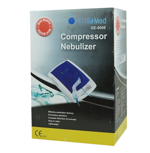 The GE-Biomed Nebulizer Compressor GE-600E is a high-quality, reliable respiratory care device designed to deliver fast and effective aerosol medication for patients of all ages. Manufactured with advanced Korean technology, this nebulizer ensures quick relief, low noise operation, and long-lasting performance, making it an ideal choice for home and clinical use.