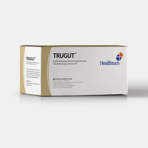 Trugut is available in Plain Catgut (Yellow) and Chromic Catgut (Brown). Chromic Catgut, due to its chrome content, is absorbed within 90 – 120 days.