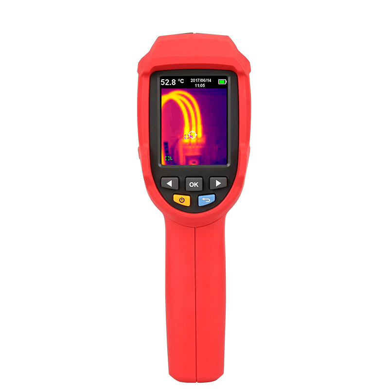 Traditional infrared thermometers can only measure single temperature points. UTi80 thermal imager can detect temperature variations of an area through a 2.4-inch LCD display. UTi80’s dual lasers can quickly lock in the measurement area and display target temperature. The standard package also includes an 8GB Micro SD card for image and temperature data storage. UTi80’s image blending feature is able to combine infrared and normal camera images together, allowing in-depth display for areas of interest.