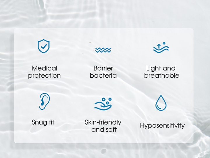 • Uniquely designed, comfortable elastic soft ear loop, eliminate pressure to the ears.