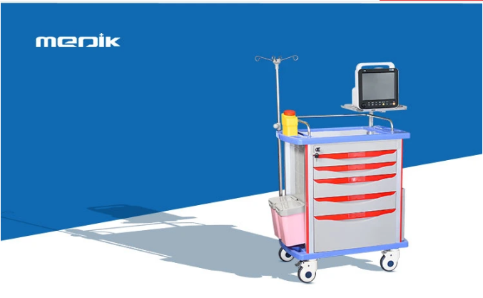 The MK-P02 Medical Emergency Trolley is a versatile and portable trolley that is essential for emergency care settings. It is equipped with a variety of features that make it ideal for providing quick and effective medical treatment in critical situations.