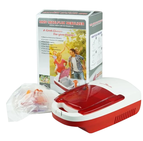 The Micelflux Nebulizer Compressor by MMD is a reliable and efficient respiratory care solution designed for home and clinical use. This high-performance nebulizer helps deliver medication directly to the lungs, making it ideal for patients suffering from asthma, COPD, bronchitis, and other respiratory conditions.