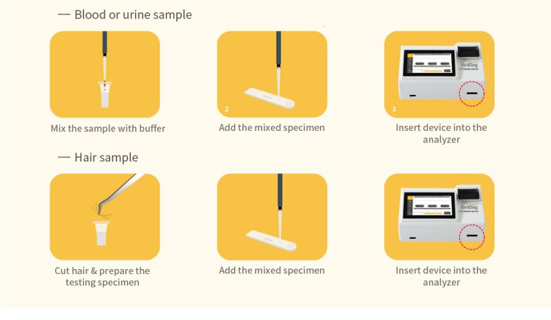 - Sample type : Whole blood / serum / plasma / urine / hair.